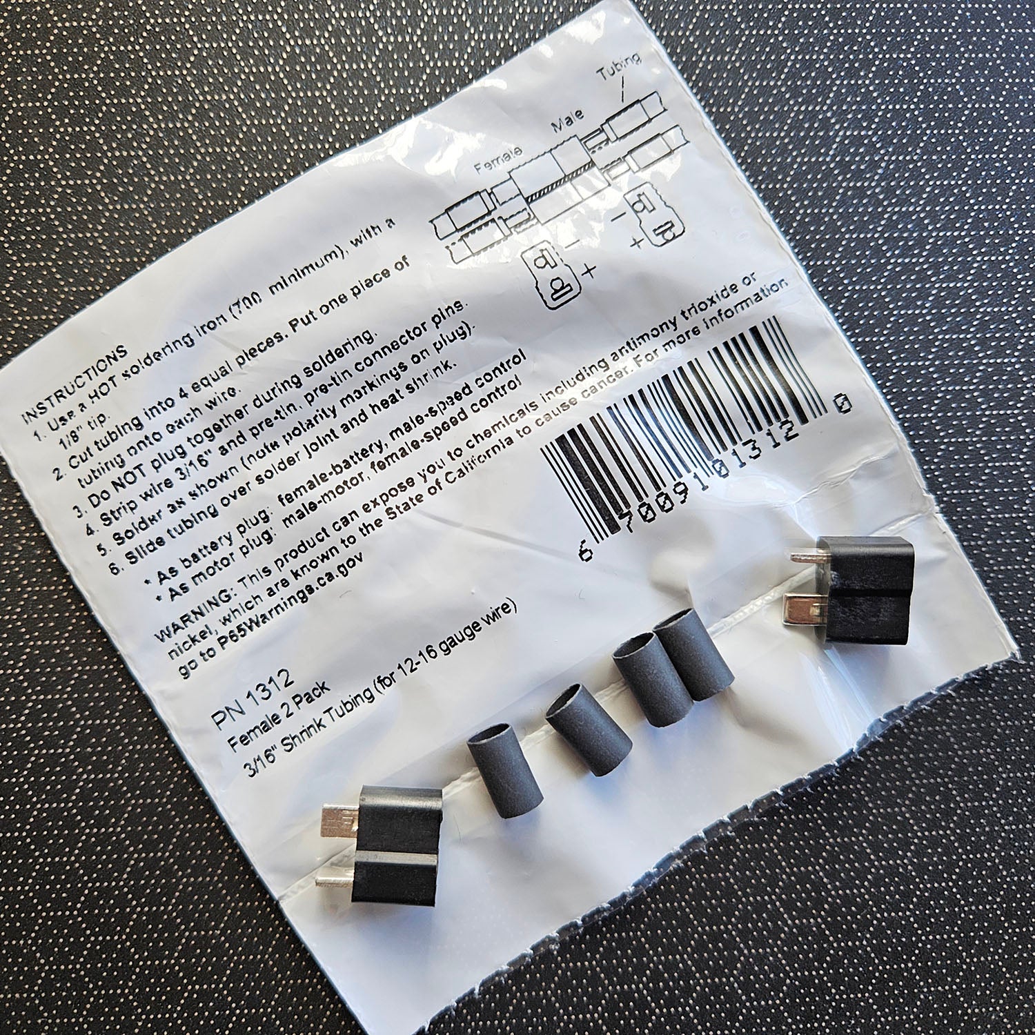 P.N. 1312 - Genuine Deans® Ultra Plug® Female 2 Pack - Don't be fooled by Imported copies. This is the highest performing connector available. P.N. 1312 includes shrink tubing for 12-16 gauge wire.